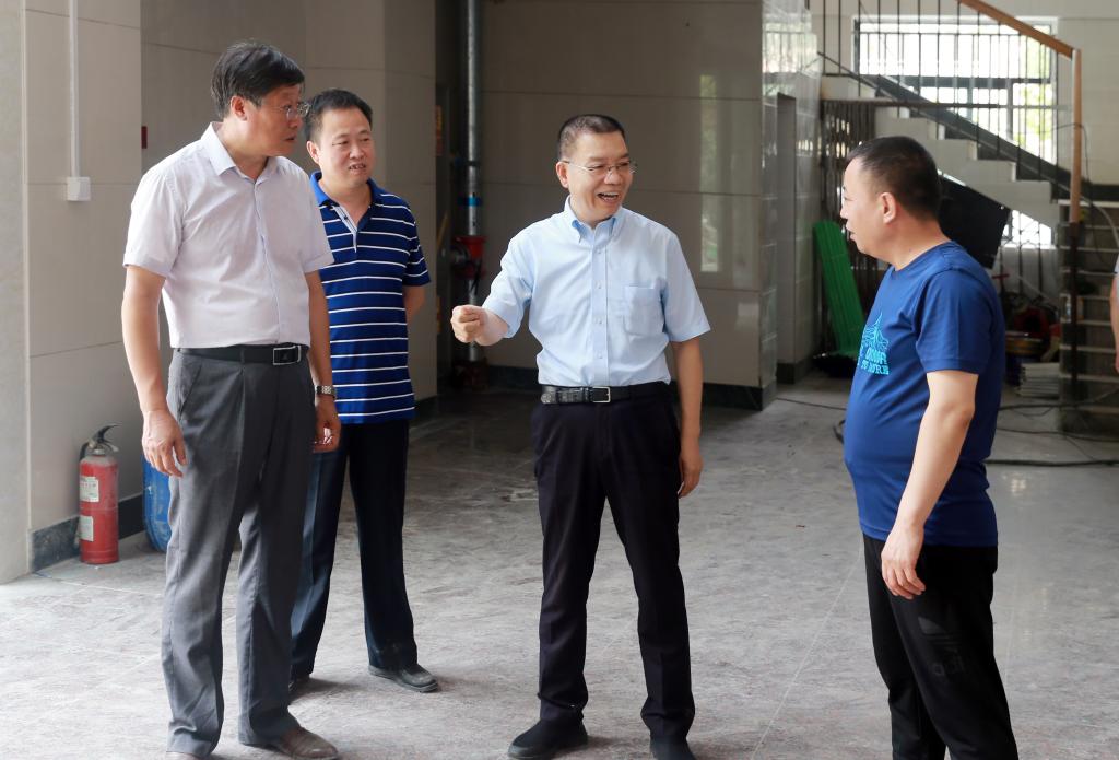 8月9日上午,我院党委书记惠朝阳和咸阳市建筑安装工程总公司副总经理胡彦昌、陕西百威建设监理有限公司总监理工程师王飞超、学院基建处负责人一起深入到笃学楼A装修改造工程项目施工现场进行检查指导。