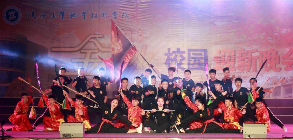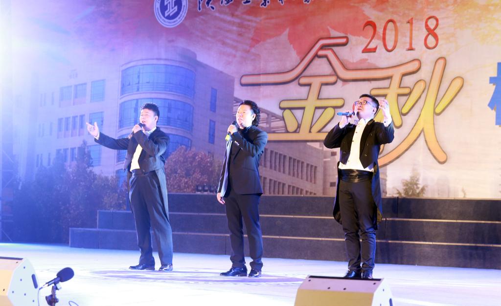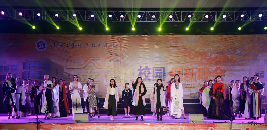 晚会在旋律优美的《我爱你中国》的乐曲声中拉开序幕,一面巨型五星红旗呈S形在观众席穿梭。与此同时,大学生艺术团舞蹈团、工商管理学院抖音队带来的爵士舞《绚丽校园》闪亮登场,舞者们活力四射的表演,为晚会营造了热烈的气氛。随着化工与纺织学院模特队《创意青春》的唯美亮相,将传统与时尚嫁接,原创与自主并行,创意十足,展现了青春风采,引得掌声与欢呼声不绝于耳;今年刚入校的2018级新同学也用歌曲联唱的形式表现了他们喜悦的心情;丁玲老师领舞的舞蹈《茉莉花》美轮美奂,柔美、轻盈、曼妙的舞姿深深地打动了现场的每一个人;晚会特邀嘉宾,咸阳市三大男高音歌唱家张立、崔兵、张戈演唱的歌曲《我的太阳》瞬间征服全场,欢呼声、喝彩声使整个现场成了欢乐的海洋;小品《女生宿舍的钟点工》纯朴真挚的情感表现以及高难度的武术表演更是将晚会推向了高潮。荣获全国大学生艺术展演一等奖作品《情系梁家河》声情并茂、激励人心的朗诵深深地感染了在场的每一位观众,演员谢幕后,掌声经久不息;随后,党焱老师一曲《好儿好女好江山》高亢嘹亮、音画《长征的信念》给观众留下了深刻的印象,最后,晚会在大合唱《共筑中国梦》嘹亮的歌声中落下帷幕。