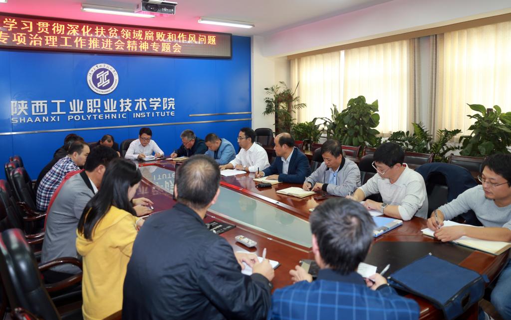 纪委书记康强传达了省教育厅纪检组下发的《关于学习贯彻深化扶贫领域腐败和作风问题专项治理工作推进会精神的通知》文件精神,纪委副书记王平勋领学了中央政治局委员、中央纪委副书记、国家监委主任杨晓渡在推进会上的讲话精神,扶贫领导小组办公室主任汤永强对学院今年扶贫工作进展、资金使用和作风建设方面的情况进行了说明;学生处处长王超联对贫困学生奖、助金评定发放情况,资助工作中腐败和作风问题自查情况进行了说明;纪委办公室李通县汇报了纪委参与扶贫监督工作情况。