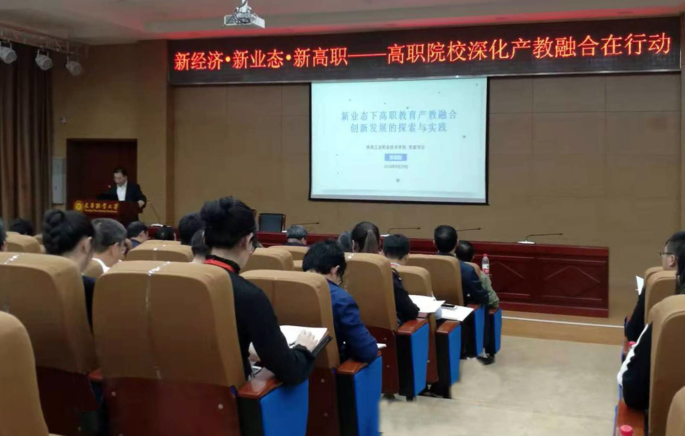 9月29日,由中国高等教育学会职业技术教育分会主办,天津职业大学承办的“新经济•新业态•新高职——高职院校深化产教融合在行动”高峰论坛在天津举行,我院党委书记惠朝阳应邀参会并做主题发言。中国高教学会职教分会理事长周建松,分会各理事单位及相关职业院校、职业教育期刊等200余名代表参加了论坛。