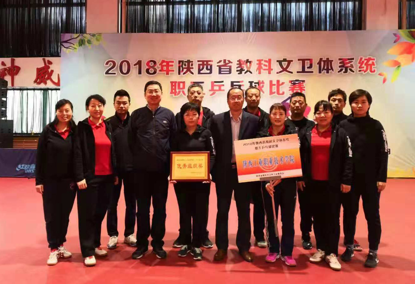 10月26日至28日,2018年陕西省教科文卫体系统职工乒乓球比赛在西安举行,我院工会主席、统战部部长刘文青带队,工会文体委员孙文杰任教练,杭挥天、李红科、张辉、袁夏莹等10名队员组成我院代表队参加了比赛。经过两个阶段激烈奋战,我院代表队以第二名的成绩从小组突围,并荣获优秀组织奖。刘文青同志代表学院领取了奖牌。