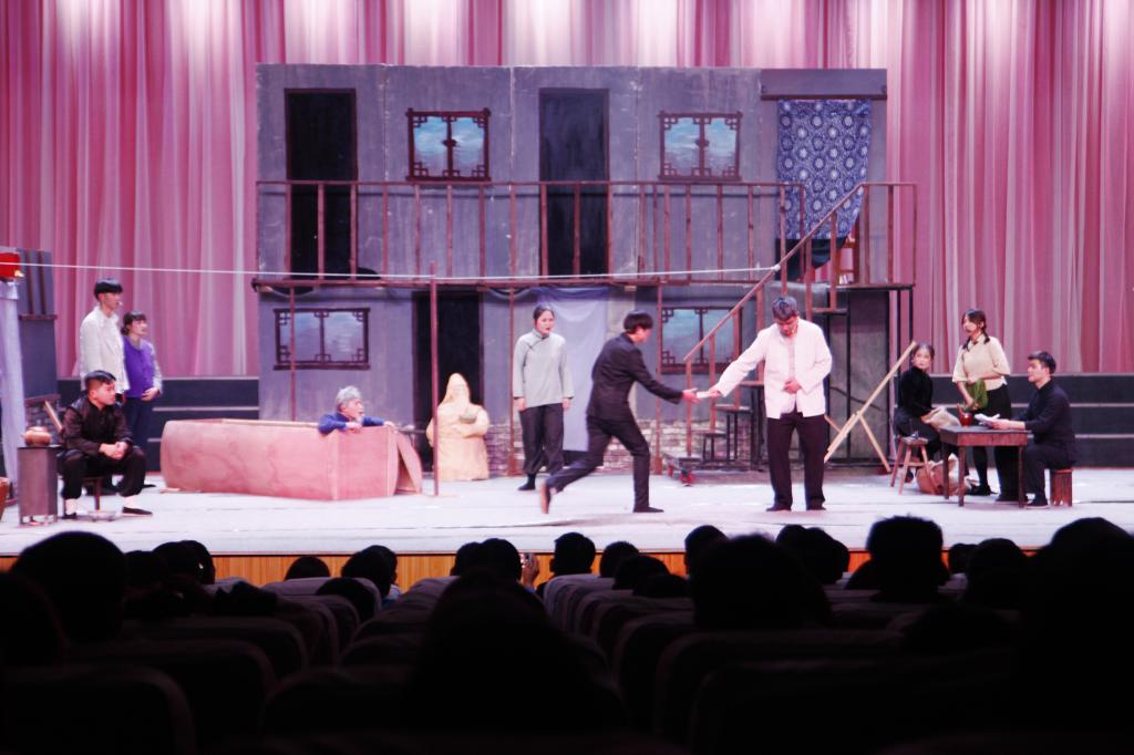 11月28日晚,咸阳师范学院文学与传播学院经典话剧《窝头会馆》在我院明德堂礼堂倾情上演。咸阳师范学院副校长舒世昌、毛龙灿,文学与传播学院院长袁方、副院长张鹏;我院党委书记惠朝阳,院长张晓云,党委副书记、副院长刘永亮以及各二级学院党总支书记、学工办主任、辅导员、学工部、学生处全体人员以及1100余名师生共同观看了演出。