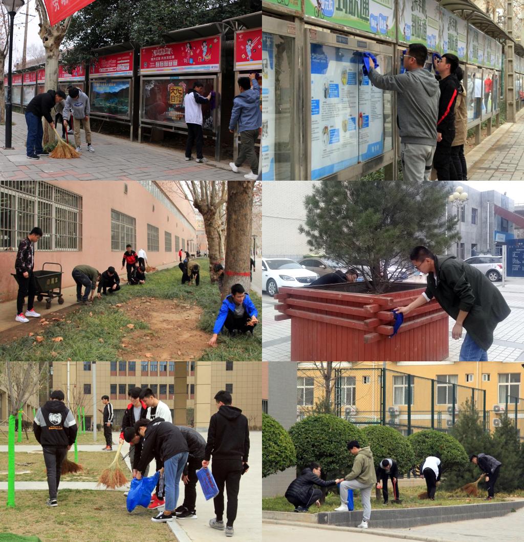 3月5日是一年一度的学雷锋纪念日。当日下午,在学生处、教务处和后勤处的统一安排下,材料学院、机械学院、数控学院、电气学院和工商学院2018级75个班级的同学们利用劳动素质与卫生课等时间,分区域对学生餐厅、宿舍,运动场、主干道路和宣传栏等进行打扫、清洁,以实际行动传承雷锋精神。