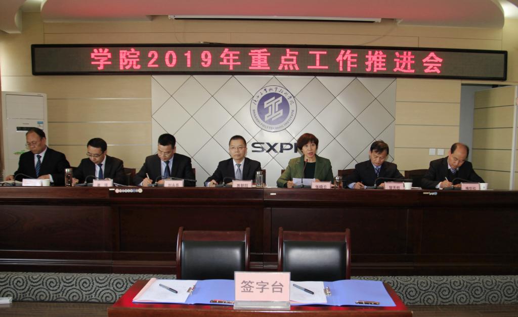 会上,各处级单位负责同志与党委书记惠朝阳同志签定了《2019年度工作目标责任书》、《2019年度安全稳定目标责任书》,立下2019工作的“军令状”,作为年末部门考核的主要依据。各分管院领导对分管部门的重点工作进行了具体安排和详细部署。
