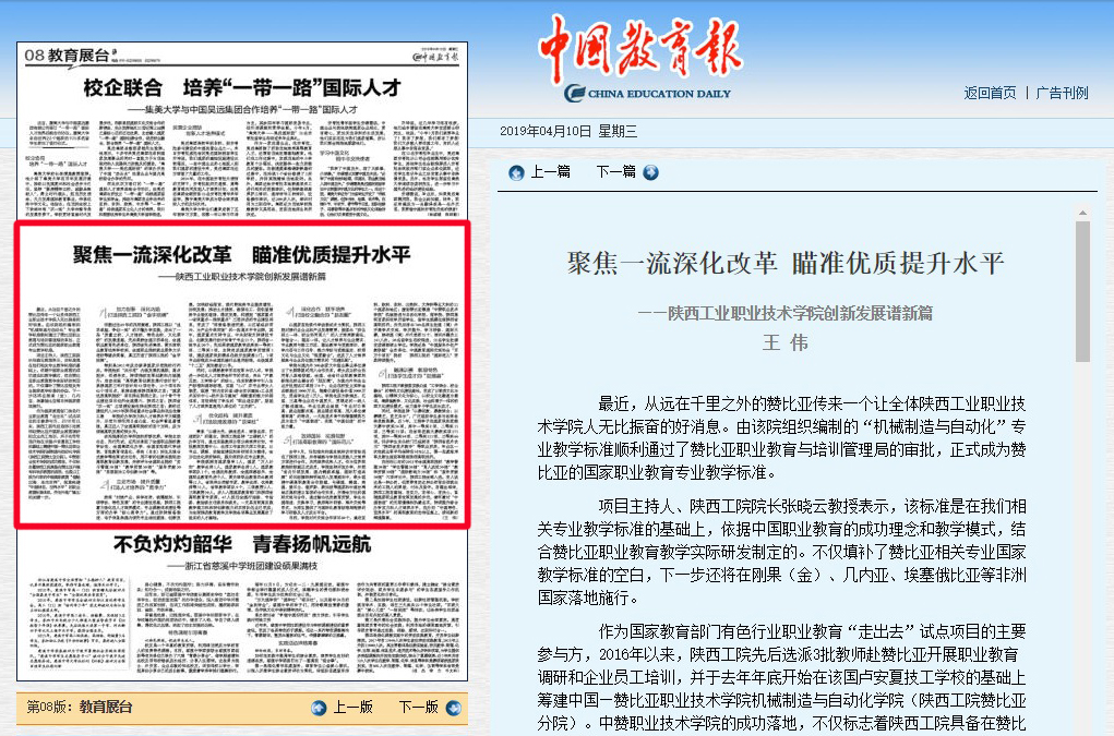 最近,从远在千里之外的赞比亚传来一个让全体陕西工业职业技术学院人无比振奋的好消息。由该院组织编制的“机械制造与自动化”专业教学标准顺利通过了赞比亚职业教育与培训管理局的审批,正式成为赞比亚的国家职业教育专业教学标准。