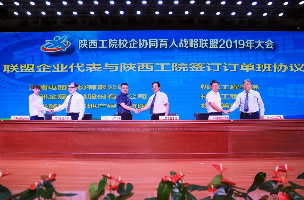 6月6日上午,中国智能铸造产业联盟、日本欧姆龙(上海)有限公司、京东方科技集团股份有限公司、美国亿滋食品有限公司、宝鸡机床集团、陕西北人印刷机械有限责任公司、隆基乐叶光伏科技有限公司、比亚迪股份有限公司、西部金属材料股份有限公司、西部超导材料科技股份有限公司、浙江海德曼智能装备股份有限公司、陕西正泰智能电气股份有限公司、陕西建工安装集团等79家联盟成员单位齐聚我院明德堂,参加陕西工院校企协同育人战略联盟2019年大会,共同谋划校企协同育人大计。