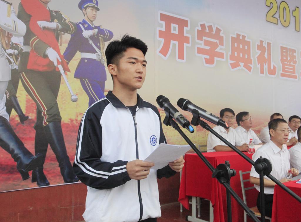 在教师代表吉武庆和在校生代表黎淼、新生代表孙小春发言后,承训部队首长、军训团团长李凯本讲话。他希望同学们珍惜军训机会,在接下来的军训中,服从命令,听从指挥,磨练心志,为以后成为祖国的栋梁之材打下坚实的基础;希望教官们科学组训、正规施训,严格要求,确保质量,真正使参训的同学们受益匪浅,终生难忘。