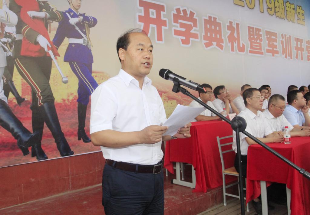 惠朝阳同志在致辞中对2019级新生表示热烈欢迎和衷心祝贺,向学生家长和老师们表示诚挚敬意,向全体参训教官表示衷心感谢。他表示,大家今天相聚在此,既是一种缘分,也是一种信任。学院建校69年来,获得的成绩和荣誉数不胜数,“陕工力量”已然成为陕西乃至全国高职教育的新名片。能在陕工职院深造,是大家的幸运;就读陕工职院,你们的选择是正确的。
