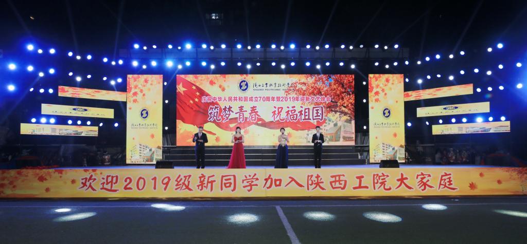 秋风送爽,丹桂飘香。9月11日晚,我院田径运动场上灯光璀璨、歌声飞扬。为欢迎2019级新同学,由党委学生工作部、美育部主办,大学生艺术团承办的陕西工业职业技术学院庆祝中华人民共和国成立70周年暨2019年“筑梦青春 祝福祖国”迎新文艺晚会在这里举行,学院领导惠朝阳、张晓云、康强、贺天柱、田昊、梅创社以及各部门负责同志与2019级7700余名新生共同欣赏了这场视听盛宴。