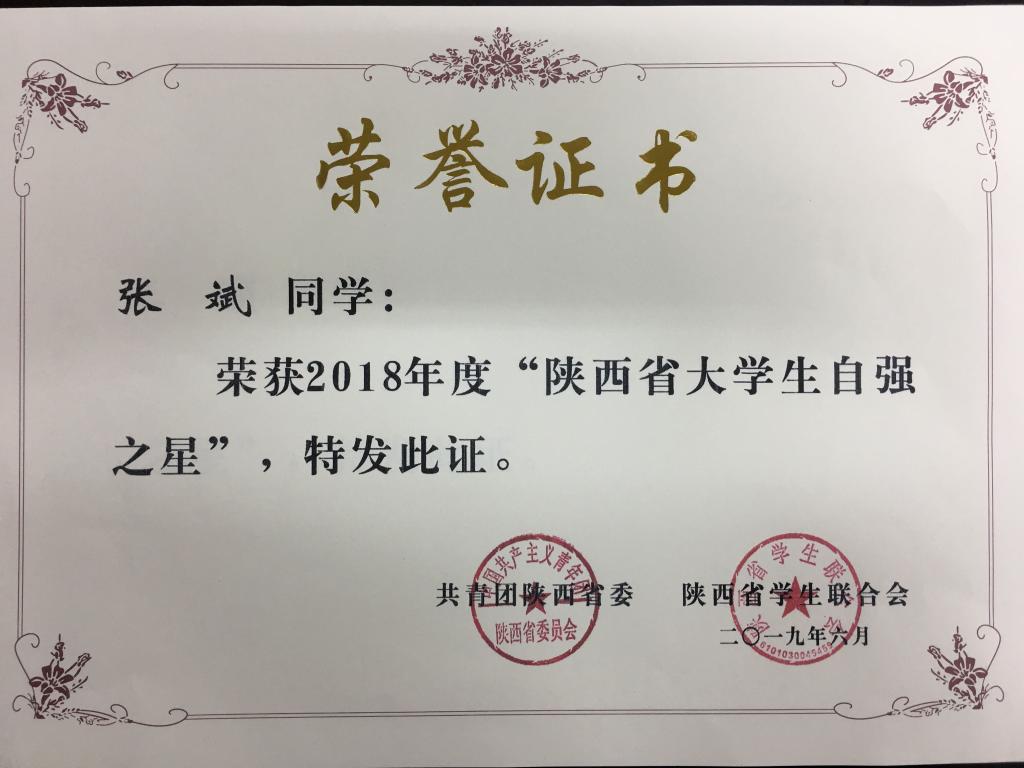 近日,团省委、省学联公布了2018年“陕西省大学生自强之星”获奖名单,经个人申报、院系两级遴选推荐、网络投票及团省委评审,我院机械工程学院王灏、材料工程学院张斌两位同学脱颖而出,荣获“陕西省大学生自强之星”荣誉称号。