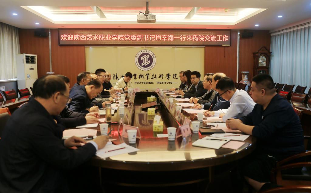 9月17日下午,陕西艺术职业学院党委副书记肖辛海一行12人来我院交流工作,学院党委书记惠朝阳同志对肖辛海副书记一行表示欢迎,并在座谈会前与来访嘉宾进行了交流。党委副书记、副院长刘永亮同志和党政办、学工部、教务处、国资处、组织部、基建处等相关部门负责人在崇文楼九楼第一会议室进行了交流座谈,座谈会由副院长梅创社同志主持。