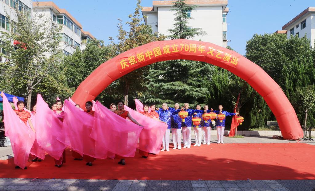 文艺演出以广场舞《我爱我的祖国》开始,演出节目形式多样、丰富多彩,有柔力球表演《母亲是中华》、《坐上动车去拉萨》;太极表演《武当太极剑》、《木兰英姿长穗剑》;舞蹈《青春永恒》、《我和我的祖国》;时装表演《祝福祖国》;水兵舞《再唱山歌给党听》;小合唱《谁不说俺家乡好》、《天边》等。最后,文艺演出在秦腔表演《梁秋燕》、《光辉照儿永向前》中落下帷幕。精彩演出赢得了场下一阵阵热烈的掌声。
