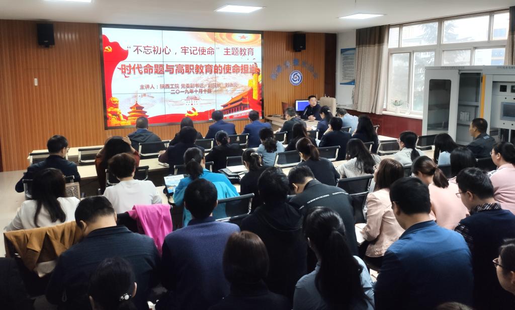 刘永亮副书记围绕时代命题的内涵、大学功能与使命、文化自信与精神传承和高职教育的使命担当等四个方面内容讲述了我们要培养什么样的人、如何培养人、为谁培养人,我们要办什么样的大学、怎样办好大学,并结合大学的功能和使命与我党在历史各个时期所形成和传承的精神文化,回答了当前建设中国特色高水平职业院校背景下如何将红色文化与工匠精神结合进行文化育人。最后刘书记希望广大教师党员以立德树人为根本任务,坚持文化自信、传承红色基因,明确目标任务,培养合格的建设者和接班人,为高职教育的跨越发展贡献陕西工院人的智慧,为学校的发展贡献自己的力量。