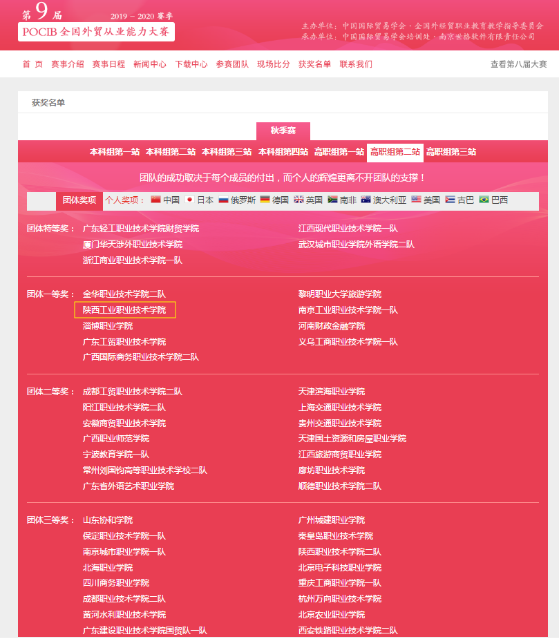 由中国国际贸易学会、全国外经贸职业教育教学指导委员会主办的“第九届POCIB全国外贸从业能力大赛”于11月26日上午落下帷幕。我院商贸与流通学院20名同学组成的参赛队伍,在指导老师王霄和赵彧精心指导下,经过20天的拼搏,荣获团体一等奖1项,个人一等奖1项、个人二等奖5项、个人三等奖13项。