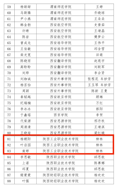 为贯彻教育部《高等学校学生心理健康教育指导纲要》及省教工委心理育人工作部署,加强高校心理委员工作,推展心理助友优秀成果,陕西省高校心理健康教育研究会开展了“2019年陕西省高校最美心委和百佳心委推选活动”。我院材料工程学院质检1801班郑梦妍荣获“最美心委称号奖”,土木工程学院造价1802班张欢荣获“最美心委提名奖”,航空工程学院机器人1802班杨朝阳、土木工程学院工程造价1808班叶启园、财经与旅游学院会计1804班南婷荣获“百佳心委荣誉奖”;柳林老师获优秀指导老师奖。