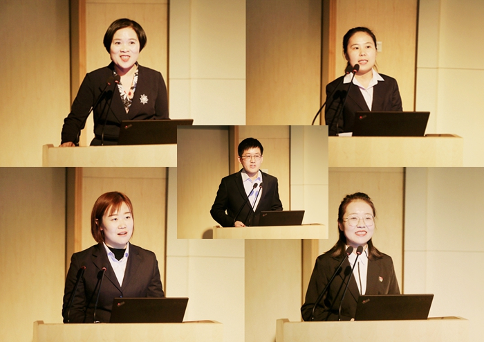 经过评委现场打分,财经与旅游学院党总支赵盼盼、公共教学党总支赵雨荣获一等奖;航空工程学院党总支王姣姣、汽车工程学院党总支鲁玺、信息工程学院党总支赵革委、汽车工程学院党总支史岩峰、商贸与流通学院党总支张焕获得二等奖;电气工程学院党总支王聪慧、土木工程学院党总支武晴晴、化工与纺织服装学院党总支秦辉、材料工程学院党总支程喆、后勤党总支韩军召、机械工程学院党总支张党清获得三等奖。此外,活动中还表彰了2019年暑期“三走进”调研活动获奖集体和个人。学院领导为获奖选手颁奖。