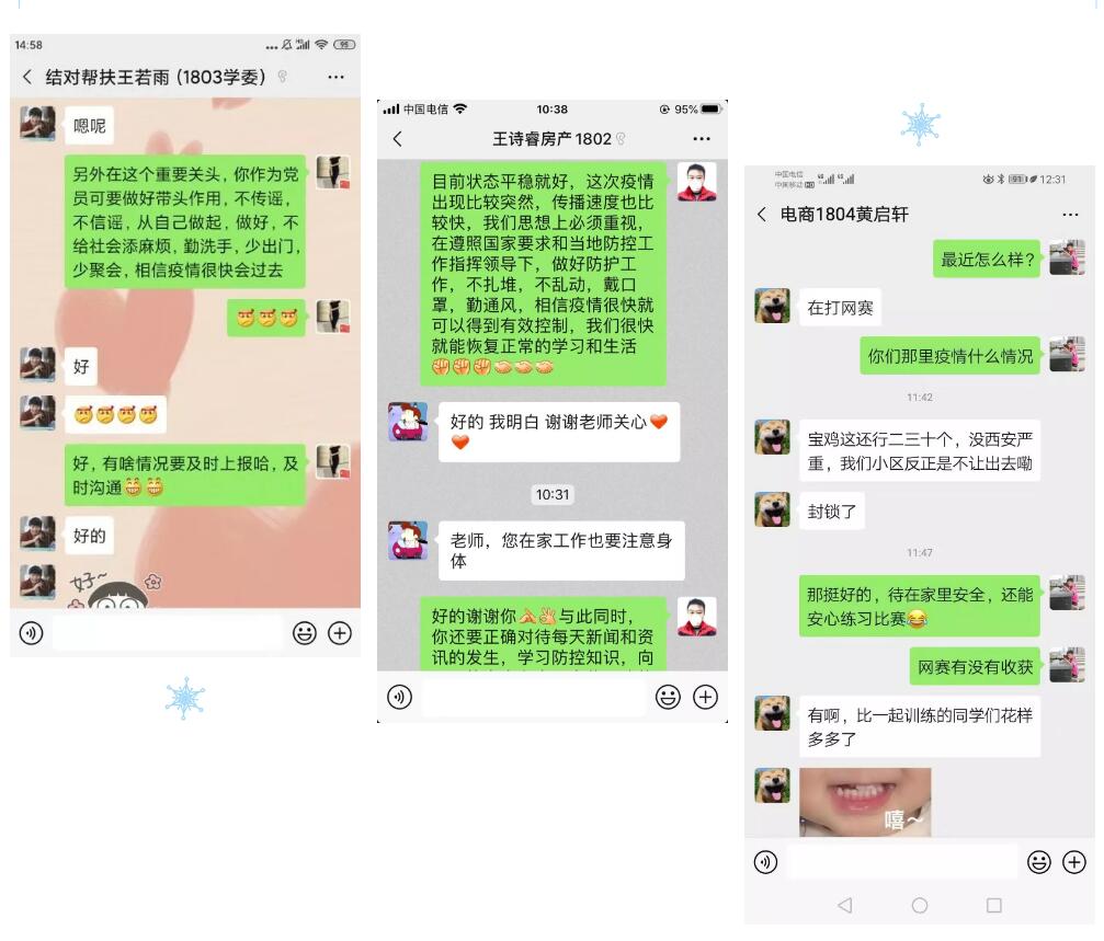 在这特殊时期,各位教师党员依旧坚持对结对学生作好学生思想工作和培养考察工作,引领学生不断成长。