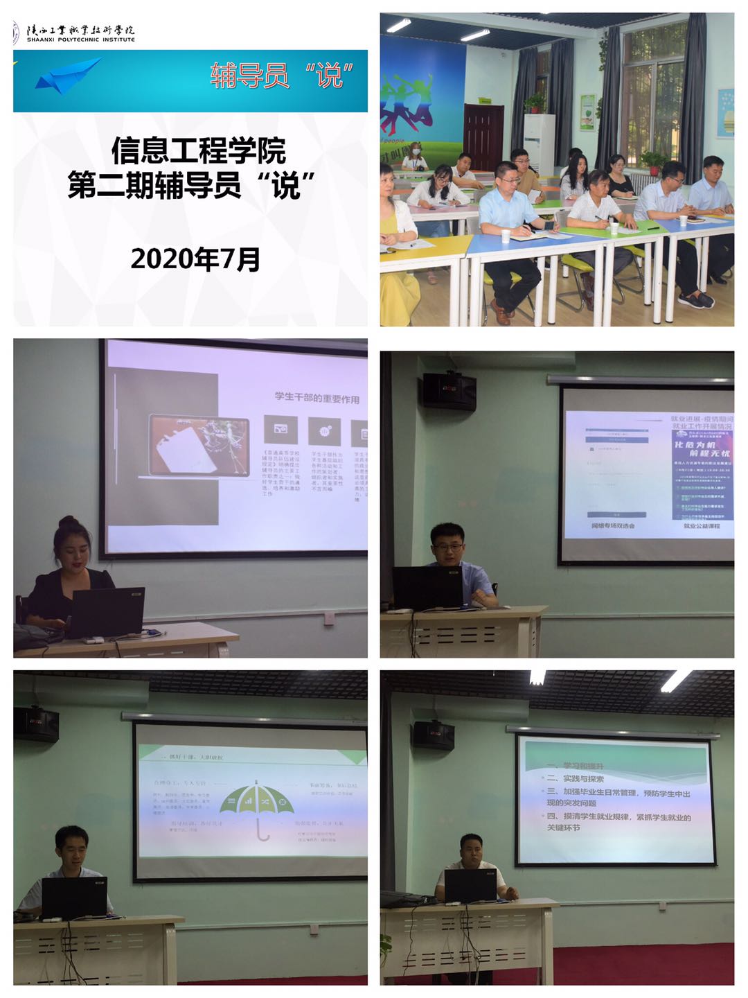 活动中,武丽丽、徐志著、李小旭、张建平四位同志以日常工作为切入点,结合自身分管工作,巧妙构思、精心设计,分别从学生干部管理、就业专项工作、班级管理等几个方面汇报了自己的工作,分享了自己的经验。
