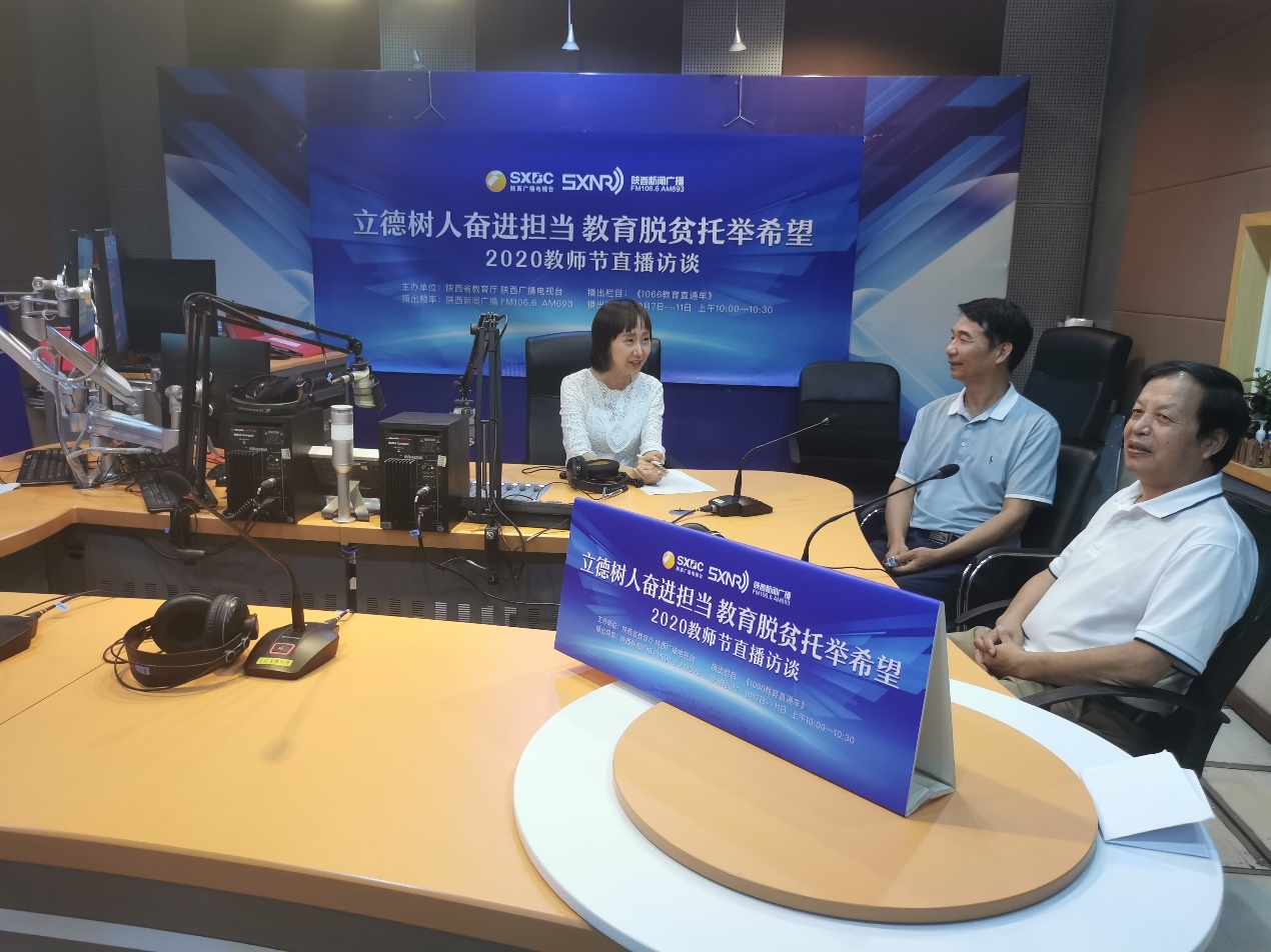 在第36个教师节来临之际,陕西省教育厅、陕西新闻广播《1066教育直通车》栏目特别策划,于9月7日至11日分别邀请工作在我省教育界一线的国家“万人计划”领军人才、国家“万人计划”教学名师等荣誉获得者,进行了“立德树人奋进担当 教育脱贫托举希望”2020教师节直播访谈。陕西省职业教育学会会长、我校原党委书记崔岩教授,我校国家“万人计划”教学名师田锋社教授受邀参加高等职业教育节目访谈。