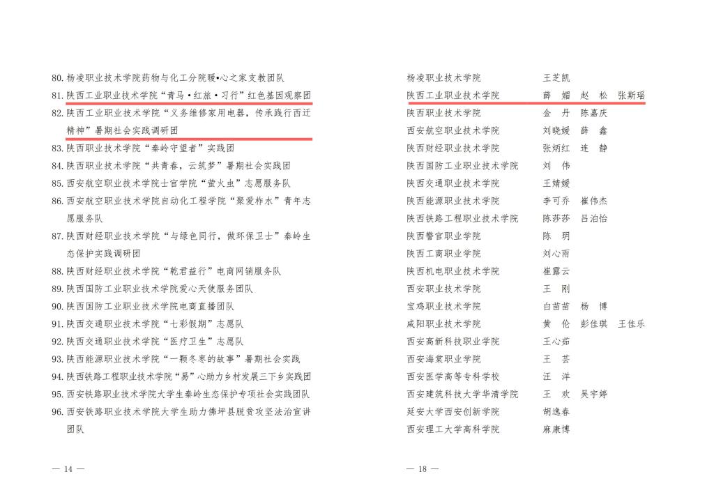 为推进“三下乡”社会实践活动持续深入开展,在实践育人中发挥更加突出的作用,近日省委宣传部、省委教育工委、省委文明办、团省委、省学联联合开展的2020年陕西大中专学生志愿者暑期文化、科技、卫生“三下乡”社会实践活动先进集体、先进个人等评选活动落下帷幕。我校荣获2020年陕西省大中专学生志愿者暑期文化、科技、卫生“三下乡”社会实践活动“省级示范学校”,商贸与流通学院”青马·红旅·习行”红色基因观察团 、电气工程学院“义务维修家用电器,传承践行西迁精神”暑期社会实践调研团荣获“省级优秀团队”称号,商贸与流通学院薛媚、电气工程学院赵松、信息工程学院张斯瑶分别荣获“省级先进个人”称号。