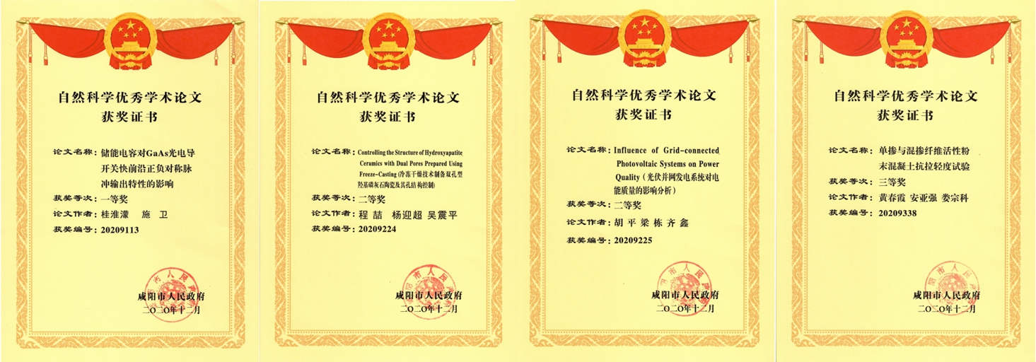 近日,咸阳市人民政府公布了《咸阳市人民政府关于表彰第九届自然科学优秀学术论文暨科技建议奖的通报》(咸政函〔2020〕112号),我院推荐的8篇论文中有4篇学术论文分别获一、二、三等奖。