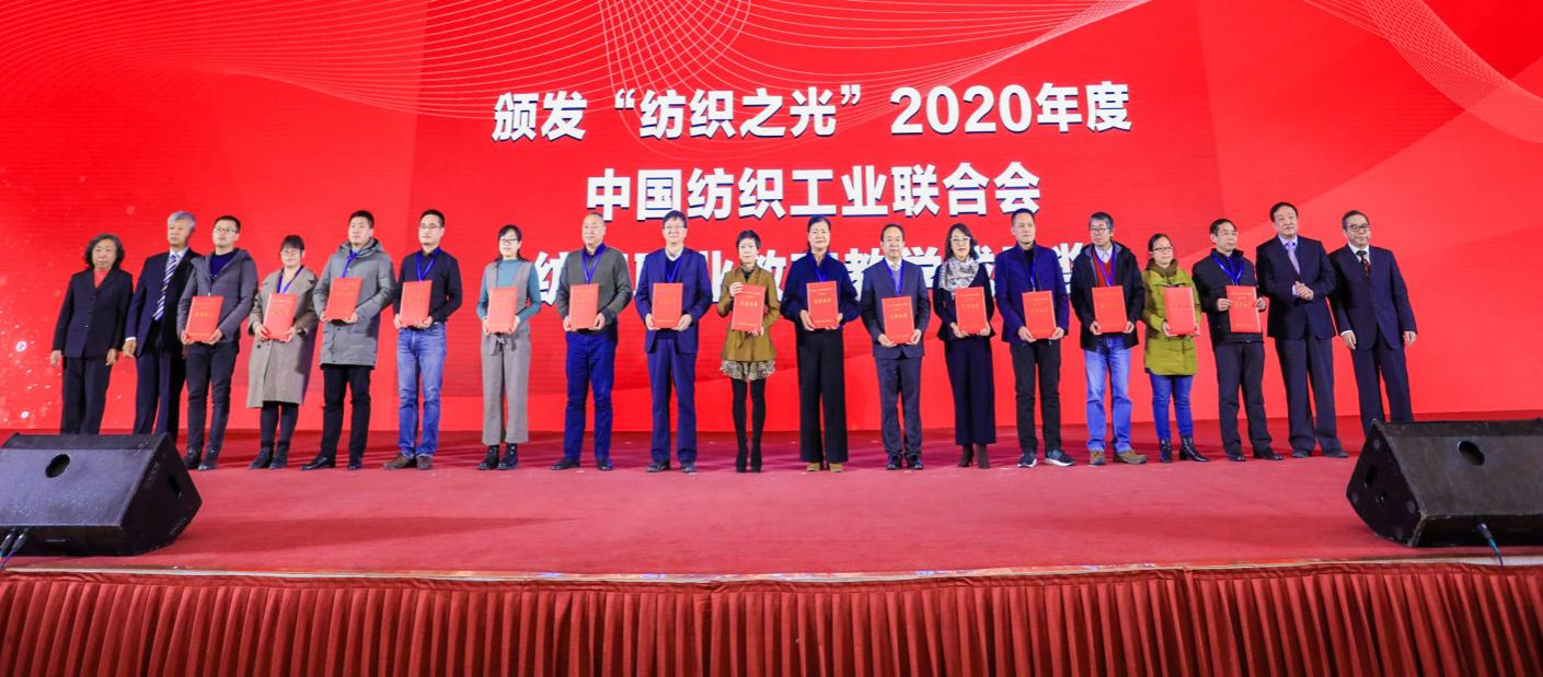 12月22日,“纺织之光”2020年度中国纺织工业联合会科技教育奖励大会在山西国际会议中心举行,中国纺织工业联合会及各专业协会领导、中国纺织工业联合会奖励委员会委员、纺织之光科技教育基金会理事代表、2020年全国优秀纺织企业家及青年企业家获奖人员等出席会议,为获得2020年度科学技术奖、教育教学成果奖、教师奖、学生奖、针织内衣创新贡献奖、2020年度中国纺织工业联合会产品开发贡献奖、2020全国优秀企业家和全国纺织优秀青年企业家的获得单位和个人代表颁奖。我院化工与纺织服装学院潘红玮老师参会,并领取了教育教学成果一等奖获奖证书。