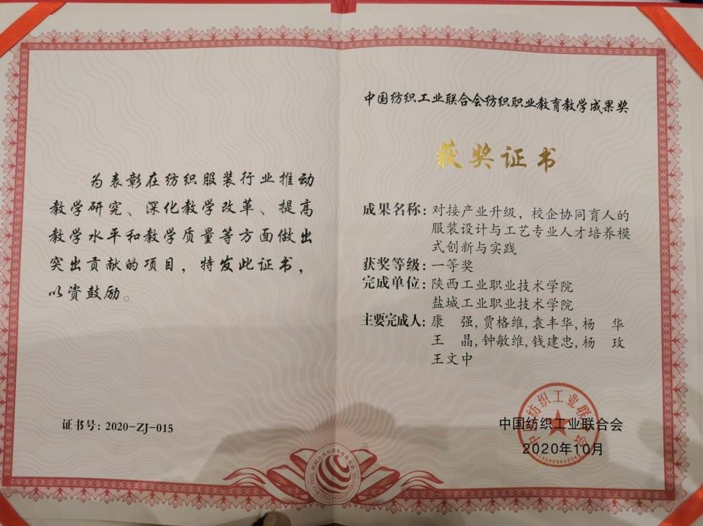我院荣获中国纺织工业联合会职业教育教学成果一等奖