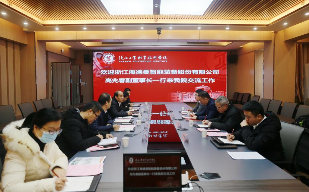 高兆春副董事长对我院的热情接待表示感谢,对我院近年来校企合作、人才培养等方面取得的成绩表示赞赏,并详细介绍了浙江海德曼智能装备股份有限公司的发展现状、人才机制、岗位需求等方面的情况。同时着重介绍了陕西工业职业技术学院往届优秀毕业生在公司发展中做出的突出贡献。他表示,我院往届优秀学生的表现足以证明陕西工院培养的毕业生能适应公司的发展需求,盼望与陕西工院深度合作,通过“海德曼订单班”招纳更多优秀毕业生来公司工作。