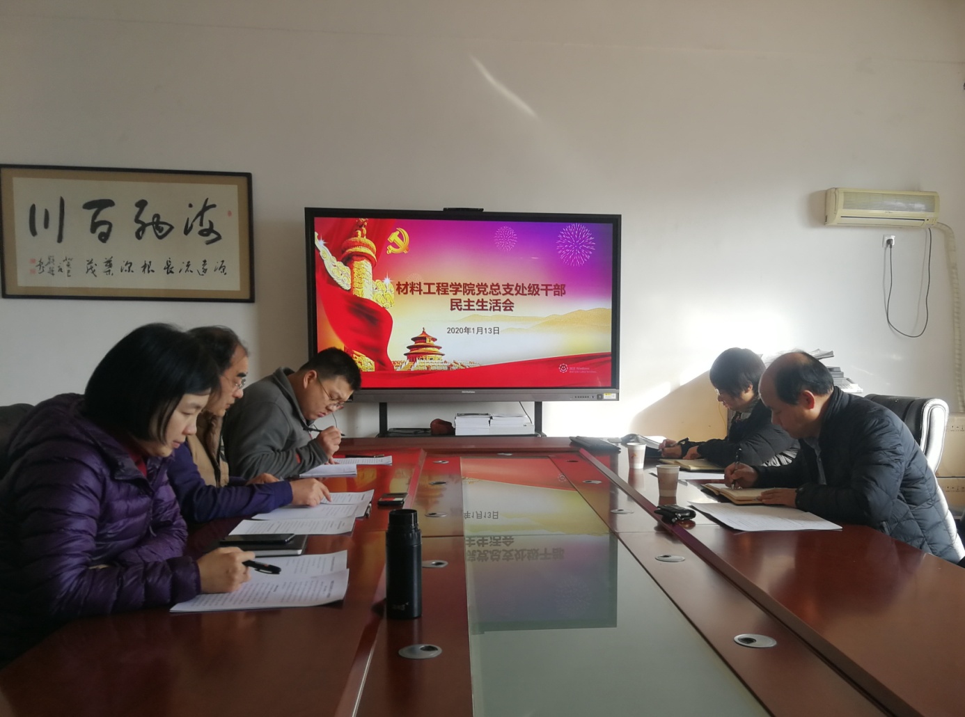 1月13日下午,材料工程学院党员领导干部2020年度民主生活会在行知楼E511召开。材料工程学院联系领导、副校长梅创社参加会议,学院党委组织部安排王艳同志督导。材料工程学院党总支委员参加会议,会议由材料工程学院党总支书记韩小峰同志主持。