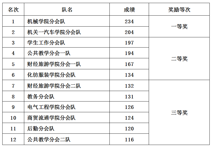 随后,分图书馆广场、精艺楼南广场和北广场三个场地开始了游艺活动。18个代表队的女教职工按捺不住紧张的心情,充满好奇的参加与以往跳绳比赛完全不同的“鼓舞人心”游艺活动。各队21名女教职工,其中一名女教职工捡球手腰系火红绸带,伺机而动;20名女教职工鼓手喊起嘹亮的劳动号子,整齐划一,气势如虹!经过近两个小时的激烈比拼,机械学院分会队、机关一汽车学院分会队力压群芳,夺得一等奖,比赛结果新鲜出炉: