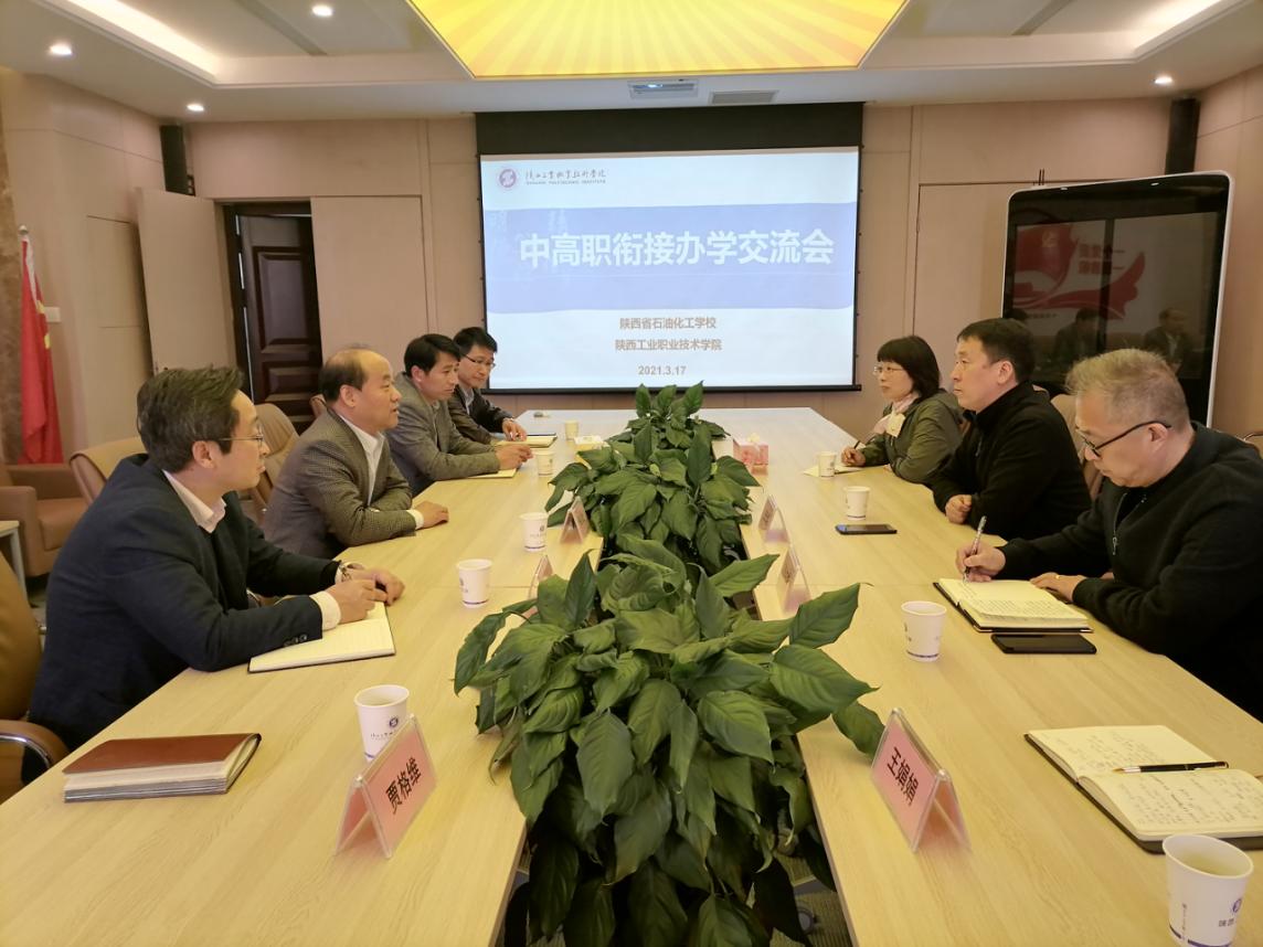 3月17日下午,陕西省石油化工学校校长王斌、副校长张中华、教学科科长王娟娟、招生办主任薛彩霞来我校就中高职衔接办学人才培养进行交流,我校副校长梅创社、学院教务处副处长白国政、化纺服学院院长王化冰、党总支书记贾格维、汽车学院副院长许冀阳出席会议。