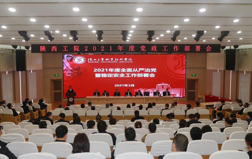 3月24日下午,我校2021年度全面从严治党暨稳定安全工作部署会在学术会堂召开。学校领导惠朝阳、刘永亮、康强、贺天柱、田昊、梅创社、刘清、段峻以及副科级以上干部参加了会议。会议对新学年全面从严治党和稳定安全工作提出了新要求指明了新方向,号召全校将申办职教本科、“双高”建设和新校区建设三项重大任务与提高党的建设质量、推进全面从严治党结合起来,在确保安全稳定的基础上,学思贯通、知行统一,践行我校“追赶超越、争创一流”的精神,做到站位高、立意深、措施实,全面推动学校高质量发展,以优异成绩迎接建党100周年。