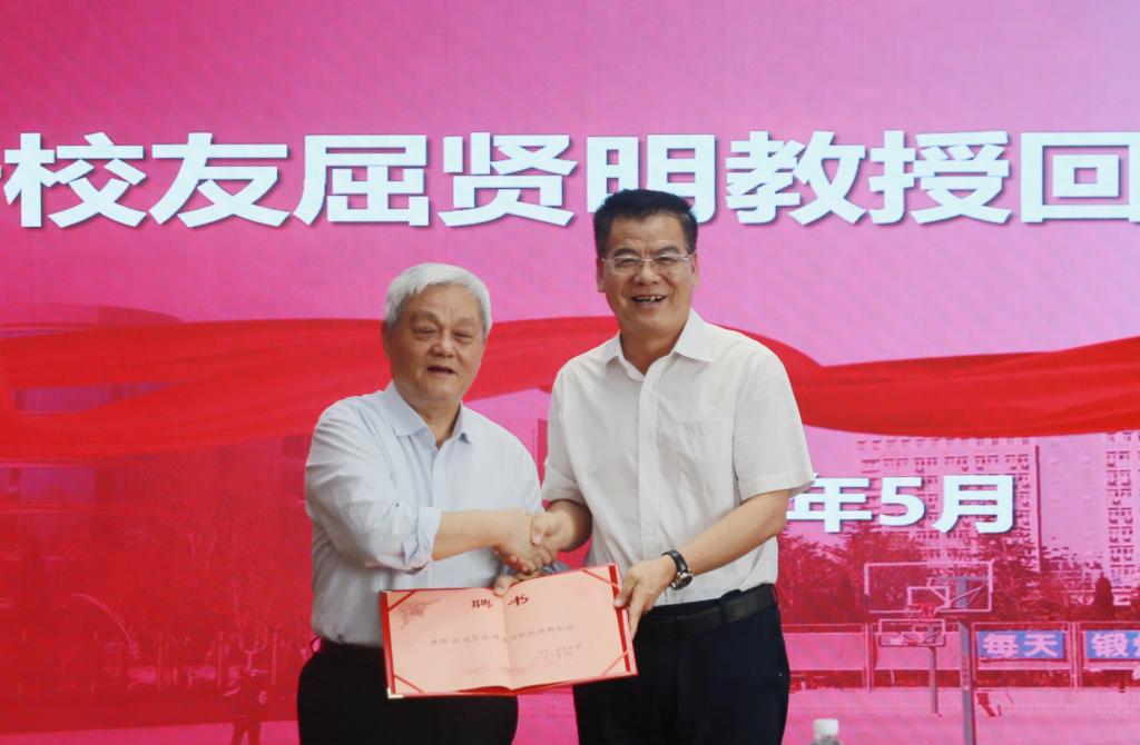 校长刘永亮为屈贤明教授颁发特聘教授证书