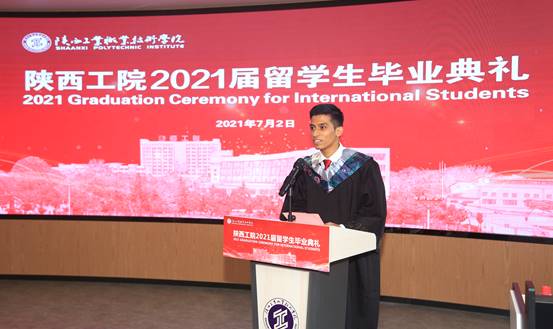 党委副书记田昊代表学校祝贺各位留学生顺利完成学业,赞扬作为陕西工院的首届留学生,各位同学为所有留学生树立了良好典范。他期待各位留学生在新的征程上,接纳变化、迎接挑战,勤勉上进、追逐梦想,交流互鉴、赢得未来;并期盼同学们承载母校荣光,铭记师长嘱托,绽放出属于自己的流光溢彩,用青春续写“陕工品牌”的华美篇章!