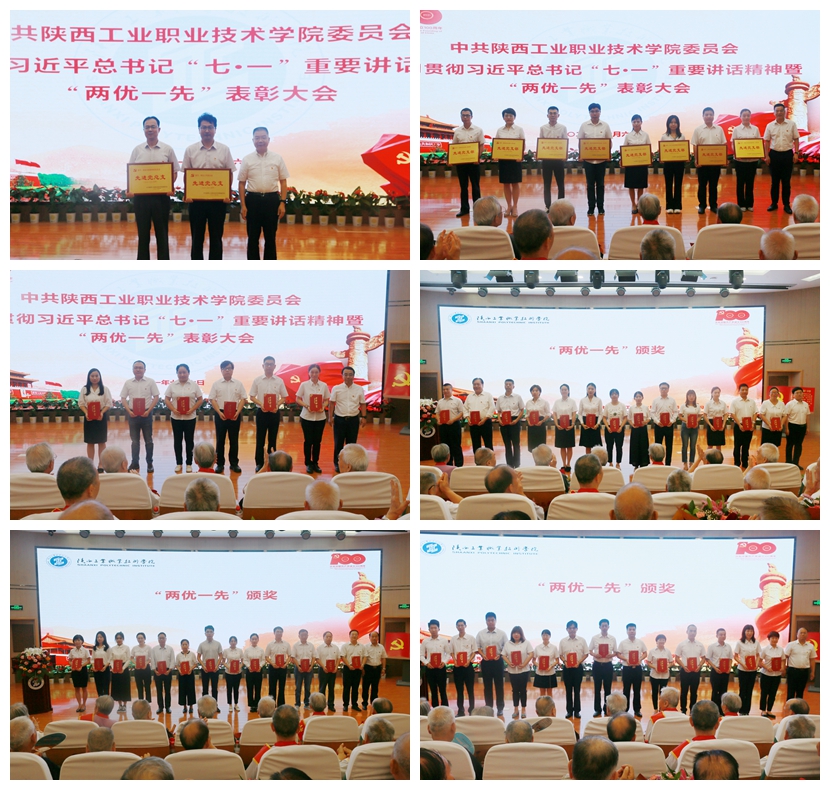 随后,党委副书记、纪委书记康强同志宣读了“两优一先”表彰决定。梁晓哲同志荣获“陕西省优秀共产党员”称号,刘迪同志被评为陕西省高校优秀共产党员,闫军同志被评为陕西省优秀党务工作者,机械工程学院总支部委员会被评为陕西省高校先进基层党组织。学生工作党总支、财经与旅游学院党总支被评为我校2020-2021学年先进党总支,信息工程学院教师第二党支部、商贸与流通学院教师第二党支部等8个基层党支部被评为先进党支部,钟晓书、孙小云、左国进等42名同志被评为优秀共产党员,成冬梅、齐智等7名同志被评为优秀党务工作者。出席会议的领导分别为受表彰的集体和个人颁奖。随后,“两优一先”代表发言,分享自己在党务工作中的所思所感,为广大党员提供可亲可近的典范、可学可赶的榜样。
