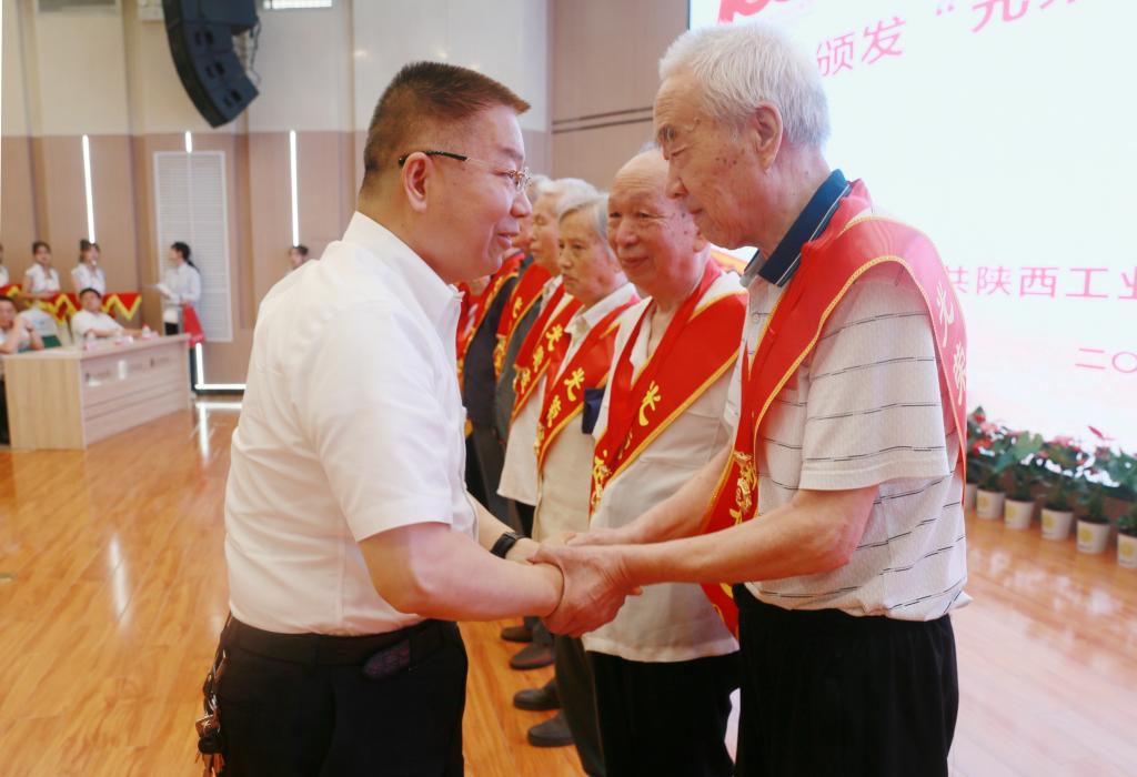 党委书记惠朝阳同志为“光荣在党50年”老党员代表佩戴纪念章