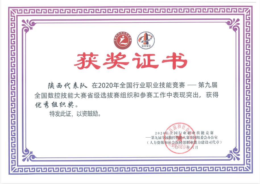 近日,由人力资源社会保障部、教育部、科技部、全国总工会、机械工业联合会等五部委联合共同举办的第九届全国数控技能大赛下发了获奖证书,我校航空工程学院教师梁晓哲、王姣姣获全国总决赛团体二等奖1项。航空工程学院师生在陕西省赛区中获一等奖2项,二等奖2项,三等奖2项,我校获得全国优秀组织奖、陕西省突出贡献单位奖。