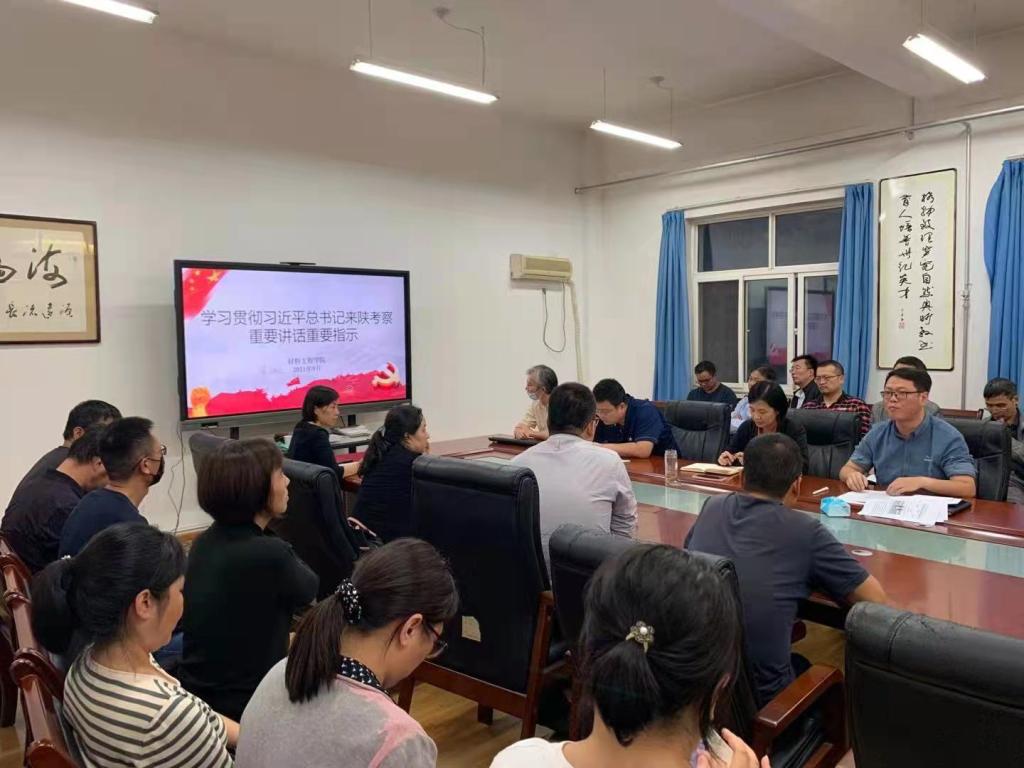 9月26日下午,材料工程学院学习贯彻习近平总书记来陕考察重要讲话重要指示专题理论学习会在行知E511会议室举行,材料工程学院全体教师参加了学习会。会上,材料工程学院党总支书记郝平领学了习近平总书记来陕考察重要讲话重要指示,主要包括习近平:解放思想改革创新再接再厉谱写陕西高质量发展新篇章(新华社)、传承红色基因培育时代新人——习近平总书记考察陕西省绥德实验中学回访(中国教育报),观看了习近平在陕西榆林考察时强调解放思想改革创新再接再厉谱写陕西高质量发展新篇章新闻联播视频。郝平同志要求大家要牢记习近平总书记的嘱托,全面贯彻党的教育方针,落实立德树人根本任务,强化学校教育主阵地作用,全面提高教育教学质量,为培养德智体美劳全面发展的社会主义建设者和接班人,贡献我们的一份力量。