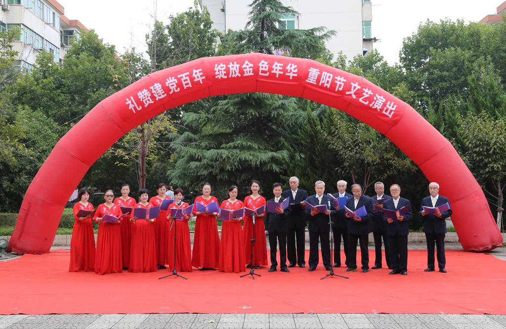 10月13日下午,离退休工作处在同乐园广场举办了“礼赞建党百年 绽放金色年华”重阳节文艺演出。学校党委副书记贺天柱与同离退休老同志们一起观看了演出。