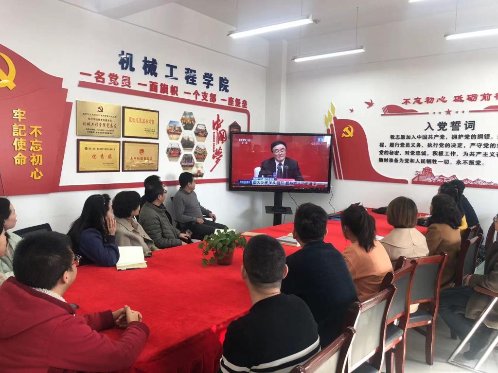 机械工程学院党总支组织教职工收看了中共中央就党的十九届六中全会精神举行新闻发布会,全体参会教职工表示将认真学习领全会精神,踏踏实实做好本职工作。