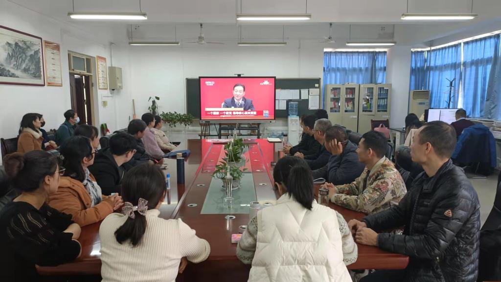 11月12日上午,中共中央在京举行新闻发布会,介绍党的十九届六中全会精神, 根据省委教育工委要求和学校党史学习教育安排,我校在崇文楼第五会议室设立主会场,组织党委中心组成员、处科级以上干部、思政教师及学生代表共同观看大会直播。此外,各二级学院、处级单位也根据实际情况,采取不同形式集中收看发布会实况。