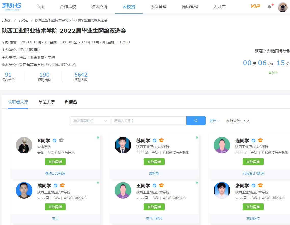 为贯彻党的十九届六中全会精神,落实党中央、国务院“稳就业”“保就业”决策部署,聚力攻坚,抓早抓实,我校于2021年11月23日举办2022届毕业生网络双选会,全力以赴推进毕业生就业工作取得积极进展。