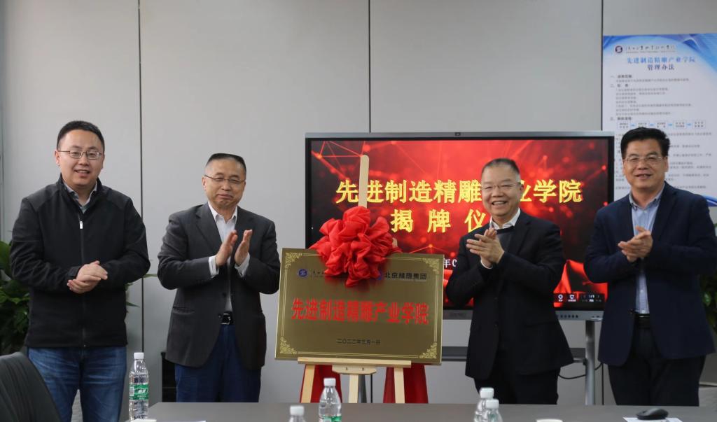 与会领导共同为校企共建“先进制造精雕产业学院”揭牌