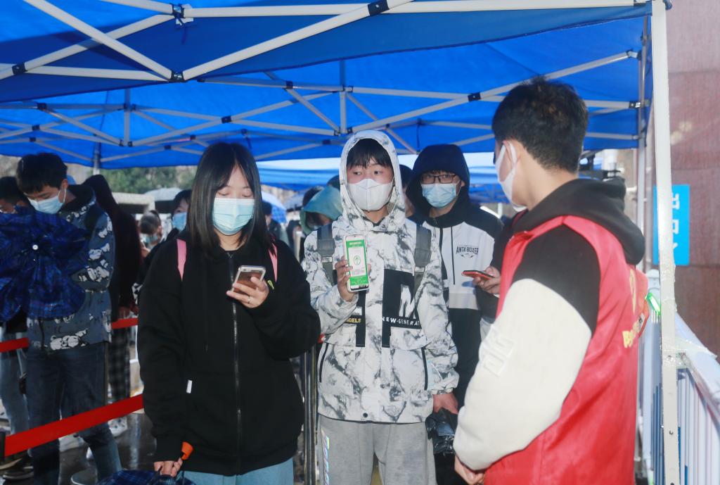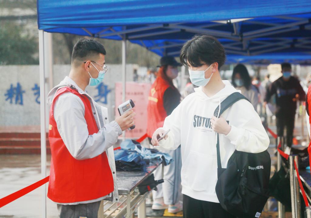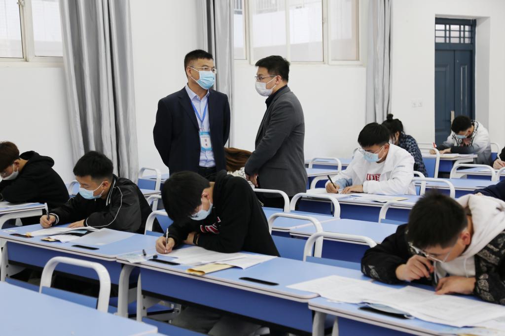 在淅淅沥沥的春雨中,工作人员凌晨到岗,做好全面消杀和防护,迎接考生的到来。亮码、测温,出示48小时核酸阴性证明、准考证和身份证,考生通过严格的防控流程方可顺利进入考区。校党委书记惠朝阳、校长刘永亮靠前指挥,听取考试方案,检查疫情防控、考场部署、考试安排等工作;全体在校校领导分批、分区带队赴考场巡查,现场协调解决相关问题。