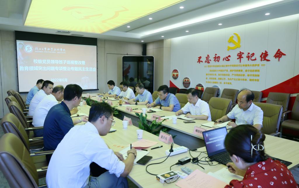 按照《陕西教育领域突出问题专项整治工作领导小组办公室<关于巡视整改暨教育领域突出问题专项整治专题民主生活会方案>的通知》(陕教专治组办〔2022〕6号)要求,经省教育领域突出问题专项整治工作督导组同意,6月24日下午,我校召开校级领导班子巡视整改暨教育领域突出问题专项整治专题民主生活会。民主生活会由党委书记惠朝阳主持,校党委班子成员参加会议,党政办公室、党委组织部、党委宣传部、纪委综合室等部门主要负责人列席会议。