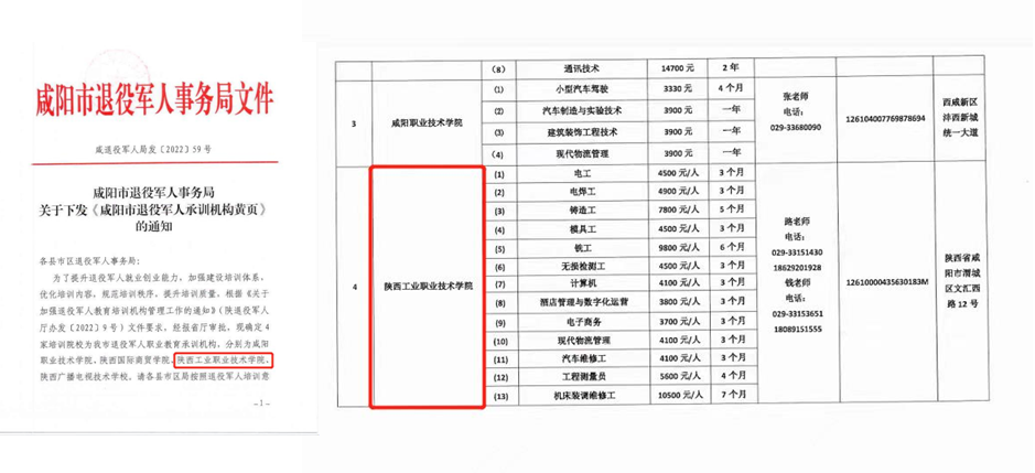 近日,经咸阳市退役军人事务局申报和陕西省退役军人事务厅审核,我校成功获批咸阳市退役军人职业教育承训机构。