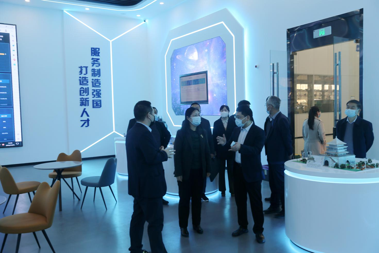 会前,马烨副县长与我校主要领导进行了深入交流,并在田昊副书记的陪同下,考察参观了学校先进制造技术工程中心、5G+智能成型实训基地、欧姆龙实训基地、学马研习·践创空间等教学实训场所。