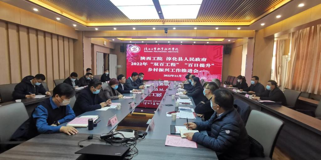 为切实加大定点帮扶力度,助力推进乡村振兴战略,11月15日下午,我校召开2022年“双百工程”“百日提升”乡村振兴工作推进会。淳化县政府副县长马烨,县教育局、农业农村局、发改局、文化和旅游局、商务局、团县委、县职教中心等相关部门负责同志,我校党委副书记田昊以及相关部门负责人参加会议。推进会由党委委员、组织部部长、振兴办主任王超联主持。