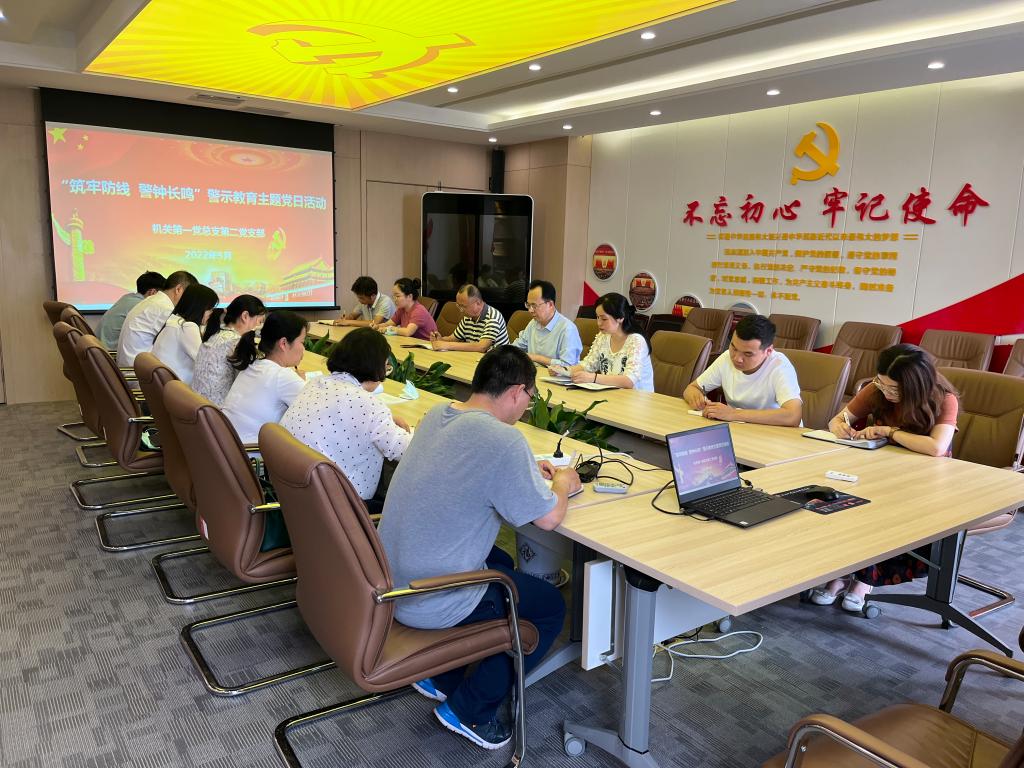 为贯彻落实习近平总书记在十九届中央纪委六次全会上的重要讲话精神,进一步加强党风廉政教育,强化廉洁自律意识,增强拒腐防变能力,5月26日下午,机关第一党总支第二党支部在崇文楼第三会议室开展“筑牢防线,警钟长鸣”警示教育主题党日活动,支部全体党员参加活动。