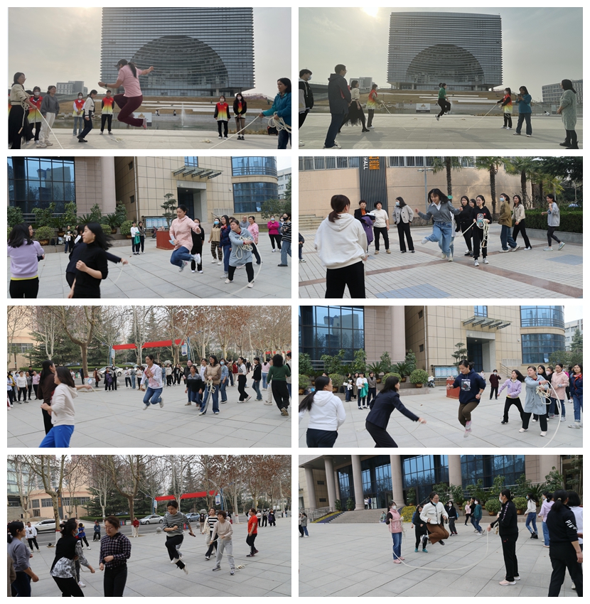 阳春三月,万物复苏。3月7日下午,为庆祝第113个国际劳动妇女节,我院2023年女工文化活动月之女教职工集体跳绳比赛顺利举行,本次比赛设渭城校区和经开校区两个分赛场,全院16个分会共计17支代表队及400余名女教职工参加了比赛。